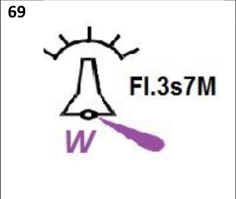 749. Cosa indica la caratteristica del segnale marittimo rappresentato in figura? Mai risposto